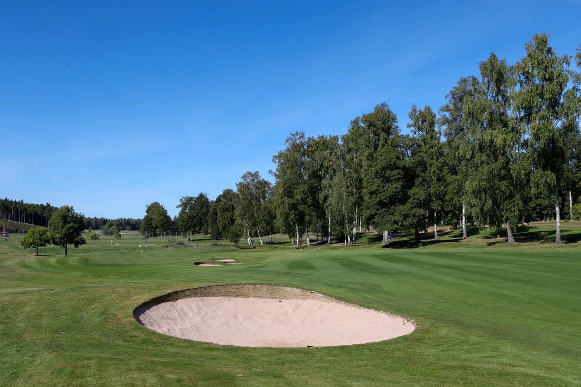 På 9-hålsbanan kommer vi att utföra åtgärder vid hål 8 där den vänstra bunkern vid green kommer att fyllas igen. Anledningen till detta är att den närliggande tallens rötter har trängt in i bunkern och orsakat problem med dess underhåll och spelbarhet.